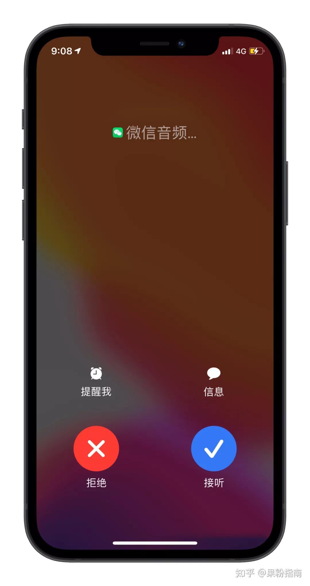 另外,与旧版界面不同,现在的新版微信 CallKit 会通过灵动岛动画显示,但目前无法显示对方的头像。